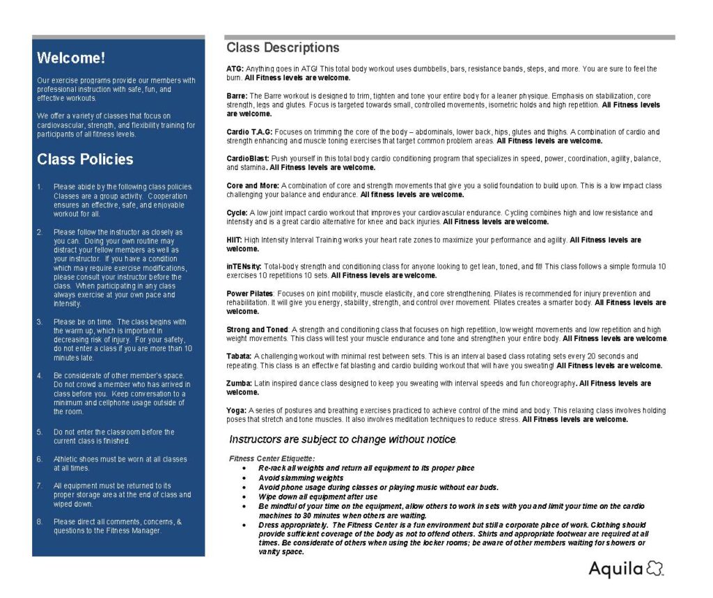 Group Exercise & Fitness Classes