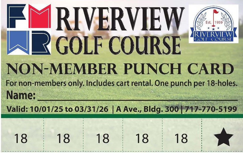 We thank all from the military and civilian communities for your service to our great country and welcome returning and new members to the Riverview Golf Course.